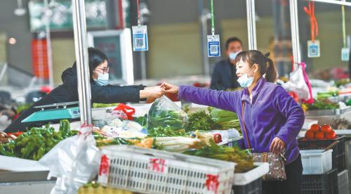 市民在問(wèn)津菜場(chǎng)菜攤買菜。 長(zhǎng)江日?qǐng)?bào)記者 許魏巍 攝