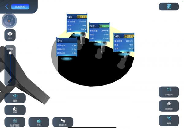 運檢人員只需手持一臺移動設(shè)備,掃描二維碼或直接GPS定位,便能進(jìn)入泵站、井蓋等具體地點,所有設(shè)施設(shè)備以三維圖形立體呈現(xiàn),甚至連“地下隱藏”的水泵,都能點擊“開挖“鍵,檢查其運行狀態(tài)。