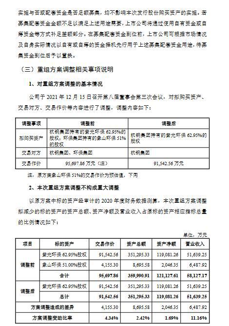 綜合考慮象山環(huán)保的項目運營情況、盈利能力及其對于上市公司重組完成后盈利能力的影響后,上市公司董事會本著增厚上市公司收益的交易原則,審慎修訂了本次交易標的范圍。最終,公司決定調(diào)整本次重組方案,將收購的標的資產(chǎn)范圍由紫光環(huán)保62.95%股權(quán)和象山環(huán)保51.00%股權(quán)變更為紫光環(huán)保62.95%股權(quán)。