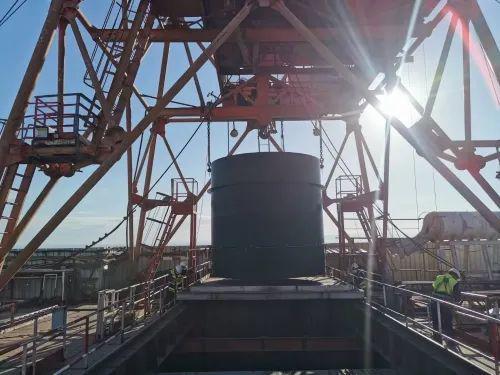 日前,隨著C68-67管節(jié)吊裝就位,電站500米級超深高壓豎井壓力鋼管安裝高度突破了海拔0米,從負海拔轉入正海拔施工。